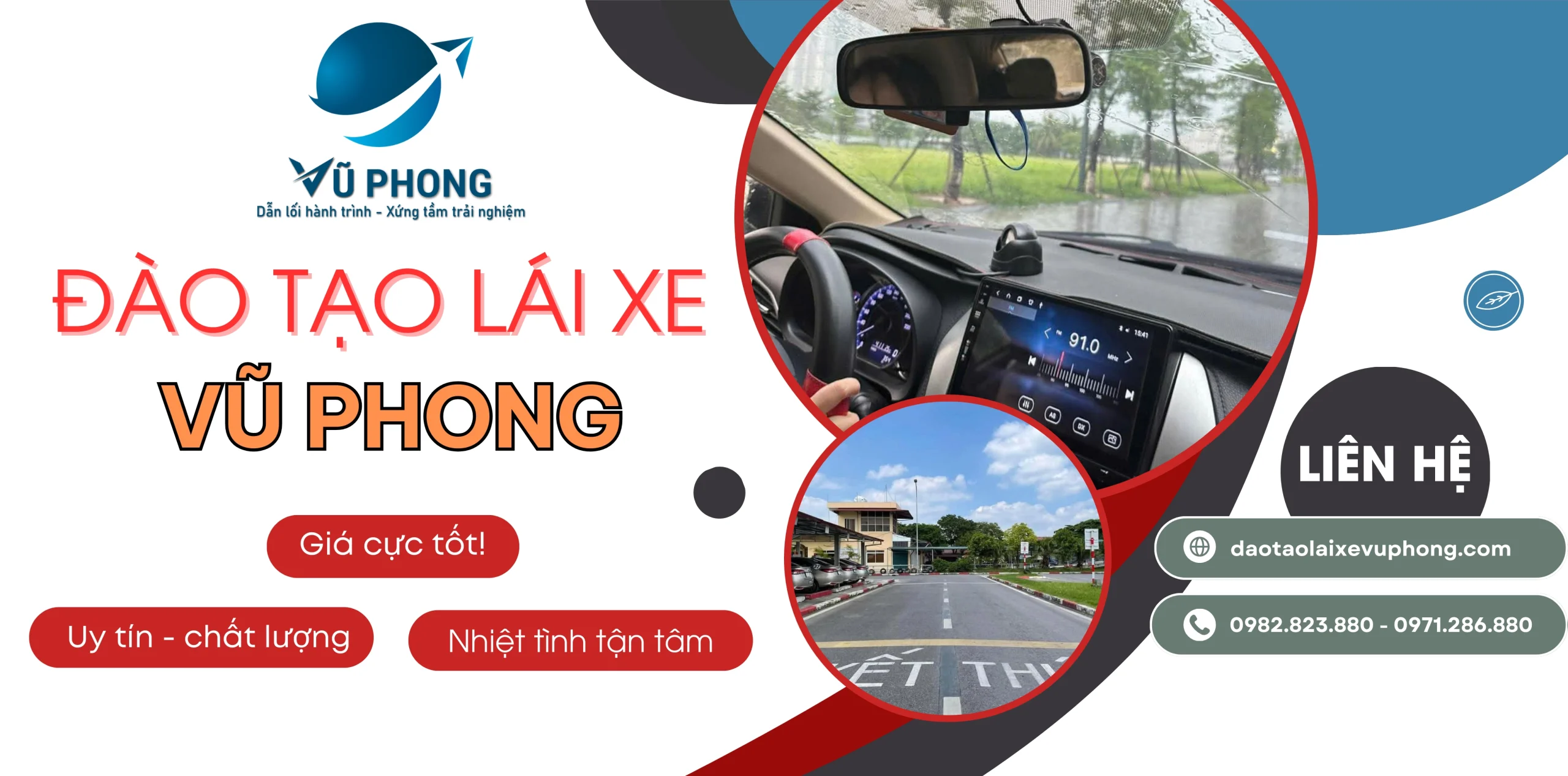 Trung tâm Dạy nghề – Trung tâm Đào tạo Lái xe Vũ Phong là đơn vị hàng đầu trong lĩnh vực Đào tạo lái xe Ô tô. Với các khóa đào tạo lái xe bao gồm: Đào tạo lái xe Hạng A – A1 – B – C1; Liên kết đào tạo nâng hạng Nâng hạng C – D – E. Vũ Phong sở hữu sân tập lái với tổng diện tích lên tớ 45.000m2; Đội ngũ giáo viên nhiệt tình, chuyên môn cao với hơn 100 giáo viên được Tổng cục đường bộ chứng nhận; Là đơn vị có đội ngũ hỗ trợ học viên trực tiếp và liên tục tại văn phòng đào tạo từ thứ 2 đến thứ 7 hàng tuần.